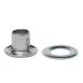 昔から使われる5mm径「ハトメ300」の厚いものにも使える足長タイプ。これをアルミ製でご用意しました。本体の高さが6mmありますので、取り付ける対象の厚みは4mmぐらい迄のものにお勧めします。座金付きの丸潰しタイプで、専用の工具で取り付けることで裏面を丸く仕上げます。(ハトメリングと呼ばれる仕上りになります)