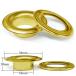 18mm径のハトメ「アイレット32」座金付きタイプです。専用の工具でとりつけることで裏面が丸く、リング状にして留めて仕上げることができますので、アイレットリングとも呼ばれます。高さ10mmですので、合計厚み7mmまでのものを目安にお取付けください。取付後には穴の縁に約8mm幅の均一な金属縁ができます。