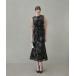 商品名:【LEJA】配色パイピングプチハイネック花柄刺繍ラメレースロング丈ドレスワンピース美脚効果結婚式 パーティードレス 二次会 同窓会 お呼ばれ オケージョン 20代 30代