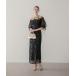 商品名:【LEJA】リーフスパンコールチュールパフスリーブIラインワンピースドレス美脚効果結婚式 パーティードレス 成人式 二次会 同窓会 お呼ばれ オケージョン 20代 30代