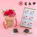 室町時代後期、京都で創業したとらや。その水羊羹は、しっかりとした食感とコクのある味わいが特徴です。ピンク色の背景にカーネーションのイラストが印象的にあしらわれた、母の日にふさわしい華やかなデザインです。心温まるおいしい贈り物を、お母さんへの想いを込めたそのまま飾れるブーケとともにお届けします。