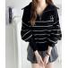 商品名:【mily bilet】キュンと大人可愛いボーダーニット。胸刺繍ハーフジップニット