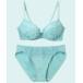 【素材】表地:レース(綿68%ほか)/裏地:綿30%?【カップ】上薄下厚モールド?【ホック】背面4段?【セット内容】ブラ+ショーツ