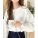 商品名:愛らしさを纏った。綿100%英字胸刺繍キャンディースリーブシルケットカットソー(長袖)