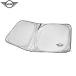 炎天下での強烈な日差しを遮り、車内温度の上昇を緩和するMINIロゴ付きフロント・サンシェード