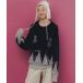 裾から袖にかけてギザギザ模様がつながって見えるふんわりシャギーニットに、