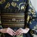 半幅帯 リバーシブル 長尺 日本製 国産 小袋帯 半巾帯 細帯 オールシーズン カジュアル 浴衣 紬 小紋 着物 こうもり 蝙蝠柄 黒 ブラック 金 黄 壁画調 蜘蛛の巣