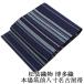 黒地に青紫や青磁色・淡い灰白色などで横段幾何模様が柄付けされています。