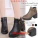 ショートブーツ レディース 太ヒール ショート丈 ラウンドトゥ ブーティ 厚底 シンプル 無地 合革 PU ベルト付き 美脚 おしゃれ 黒 通学 通勤 大きいサイズ