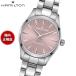 【ハミルトン HAMILTON ジャズマスター クォーツ H32301171 腕時計 レディース JAZZMASTER QUARTZ スタイリッシュでフレッシュな「ジャズマスター クォーツ 32mm」は、ダスティローズのサンレイ仕上げダイヤルにスケルトン加工のドーフィン針を採用し、伝統的なスタイルに現代的な解釈を加えています。超薄型ケースとサテンとポリッシュ仕上げのディテールが、洗練されたシルエットを生み出しています。若々しいエネルギーとタイムレスな洗練さを融合させたクラシックなドレスウォッチです。[ハミルトン HAMILTON 2026 新作]】