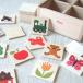 30組60枚のペアカードでメモリー遊び(神経衰弱)。キーナー夫人の人柄を感じさせる暖かく、ほのぼのとしたイラストレーションは、子ども達だけでなく大人の心も惹き付けます。また、木に直接印刷するオフセット印刷であることが大きな特色です。ことば遊びや、物の名前を覚えるのにも大活躍。小さな工房で心をこめて生産されています。