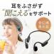 耳をふさがず“聞こえる”をサポートする骨伝導集音器。必要な音だけを届けるノイズ除去により、周囲の雑音を抑え、話し声などをクリアに聞き取りやすくサポート。かんたん2ステップですぐ使える。難しいペアリング不要。(室内/屋外/声量強調モード)3つのモードを搭載。本製品なら構造上耳を塞がないので通気性が良く衛生的。IPX5防水。USB充電式。