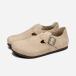 ビルケンシュトックの定番アイテムであるBoston/ボストンの、かかとが覆われたモデルがLondon/ロンドンです。シンプルなシームレスデザインのシューズで、裁ち端の風合いを生かし、ライニングのないナチュラルなアピアランスが特徴です。このデザインと極めて柔らかいレザーのアッパーによって、まるで自分の肌のようにぴったりと足にフィットします。