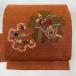 名古屋帯 美品 秀品 紬地 雪輪 草花 刺繍 金糸 赤茶 正絹 中古