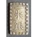 鋳造期間 嘉永6年〜慶応元年 品位銀96.8% 量目1.89g 表面 一朱銀字の朱と銀字の金編の人の左側が上に跳ねる、背面の銀座定是(ぎんざじょうぜ)の座の字が上に跳ねるため、三ハネ銀 跳座 と称します。※少ない