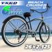 【送料無料】シマノ製6段変速、前後泥除け付き、ホワイトウォールタイヤ採用ののビーチクルーザー。