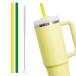 SCLAB プラスチック カラー ロングストロー 約300mm 2本 BPAフリー + ブラシ1本 30oz/40oz 飲料 繰り返し利用可能 健康 持ち運び簡単 洗浄ブラシ付き 長い スタンレー互換 30oz / 40oz用 (グリーン+イエロー)