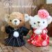 和風の結婚式にぴったりな和装テディベア。アーティフィシャルフラワーの髪飾りとボールブーケをつけています。