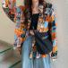 柄シャツ カラフル 遊園地 総柄 イラスト ビッグシルエット 長袖 トップス ダンス 衣装 韓国 ヒップホップ レディース