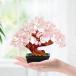 この美しい盆栽には、ローズクォーツ、アメジスト、シトリン、グリーンアベンチュリンといった天然石が使用されており、それぞれが異なるエネルギーを持つと言われています。