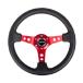 並行輸入 NRG Innovations NRG-RST-006RD 強化ハンドル - 350mm スポーツハンドル (深さ3インチ) - 赤いスポーク 丸穴付き、ブラックレザー