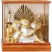 後光が差したかのような美しいデザインの兜が、大切なお子様の晴れの日のお祝いに相応しい、飾る場所を選ばないコンパクトなサイズ感も魅力のケース入りの兜飾りです。