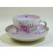 ※カップの中に少し黒点があります。カップ上の金線に極くわずかに色剥げがあります。その他、全体的には多少のスレがありますが、葡萄棚のようなデザインがゴールドで描写され、ピンクのバラを中心とした花束。豪華さと上品さが美しく融合した品です。