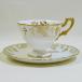※微細な点があります。カップ&ソーサーにはあまりありませんが、特にプレートに多少の擦りキズがあります。プレート裏に少しペイントの付着があります。カップの持ち手と反対方向のゴールドラインに小さなチップがあります。カップのチップ以外は特に目立つ瑕疵といえるような部分はなく、ほぼきれいな状態です。