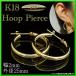 イエローゴールド K18 フープピアス 2mm x 25mm 両耳 1ペア メンズ フープ リング ピアス トライディア ジュエリー