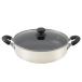 蓋の取っ手がウッド調がポイント。北欧テイストがかわいい、アイボリーカラーの両手鍋です。