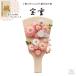 淡いピンクを基調としたつまみ細工の花々は、愛らしい手毬と組み合わされ、まるで春の訪れを告げるかのように、ふんわりとした温かさを感じさせます。花の中心にはきらりと輝くゴールドのアクセントがあしらわれ、上品な華やかさを添えています。