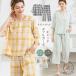 パジャマ ダブルガーゼ ルームウェア レディース チェック 上下セット ワイドパンツ 綿100% 2重ガーゼ 春 夏 秋 涼しい ゆったり 七分袖 テーラー襟 丸襟 ナイ