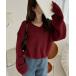キーワード:ニット セーター レディース vネック 長袖 無地