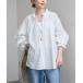 【ついに再入荷!】ブリードの森 マロンクリームのブラウス レディース シャツ 長袖 パフスリーブ ダブルボタン Wボタン 麻混 リネン混 トップス