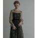 商品名:【BONLECILL noir】ベロアパイピング キャンディスリーブ フラワーレースドレス