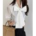 キーワード:ブラウス シャツ レディース ストライプ ボウタイ リボン 長袖 無地