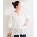 キーワード:ブラウス シャツ レディース ノーカラー レース 洗える 長袖