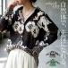 大胆な花柄が映える長袖シャツで、すっきりとしたネックラインと程よい袖丈、ヒップにかかる丈感が特徴のゆったりシルエットは体型カバーを叶えつつ広がりすぎない形状に仕上げ、前開き仕様で羽織りとしても着回せる一枚です。