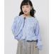 キーワード:ブラウス シャツ レディース コットン ストライプ ノーカラー リボン 長袖 無地