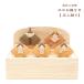 無垢の栓の木箱に入ったおひな様人形です。栓の木箱は、そのまま飾り台として使えます。三人官女のついた、5人飾りです。