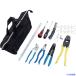 技能試験はこのセットで万全!【圧着工具】リングスリーブ用適用サイズ: 小(1.6×2)/ 小/ 中/ 大【ウォーターポンププライヤー】250mmサイズ 使用範囲:最大口開き38mm パイプ外径6~46mm 対応【ペンチ】175mmサイズ切断能力:VVF 線1.6×3 心/ より線8.0mm2/銅線Φ3.6mm/ 軟鉄線(針金)Φ2.6mm【電工ナイフ】折りたたみ式電工ナイフ【プラスドライバー】No.2:+2×100【マイナスドライバー】5.5mm:−5.5×100【コンベックス】コンパクトサイズで2M計測。ロック機能、ストラップ付き【収納袋】試験の持ち運びに便利な専用工具袋。