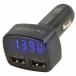 【送料無料】シガーソケット 温度計 電圧計 電流計 測定 12V 24V 対応 USB 充電 ポート デジタル バッテリーチェッカー シガー 2ポート
