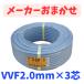 ▼送料無料 メーカー指定不可 VVFケーブル 3×2.0mm 1巻 製造年式1年未満を発送 被膜灰色 赤白黒 3芯2.0 2.0mm×3C VA線 電線 電材
