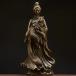 こちらは中国神話や道教に登場する霊獣「九尾狐(きゅうびのきつね)」を女性神の姿で表現した、真鍮製の美しい置物です。九尾狐は九本の尾を持ち、強力な霊力と知性、美しさを兼ね備えた存在として、古代中国から多くの信仰と伝承が受け継がれてきました。特に、九尾は天に属する瑞獣とされ、皇族や貴人の守護獣、あるいは神の使いとして尊ばれてきた歴史があります。