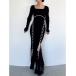 キーワード:ワンピース タイト ロング 長袖 無地 キレイめ デート ドライブ フェミニン 韓国ファッション 記念日 冬