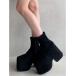 キーワード:ブーツ レディース ショート スクエアトゥ ハイヒール 厚底 キレイめ デート ドライブ フェミニン 韓国ファッション 記念日 冬