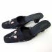 IROIRO ミュール サンダル レザー サテン 花柄 立体 刺繍 40 黒 ブラック ピンク 25.0cm くつ 靴 シューズ 大きいサイズ レディース
