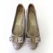 サルヴァトーレフェラガモ パンプス ヴァラ リボン カットレース 本革 レザー 花柄 カットワーク 6.5 D グレージュ 23.5cm くつ 靴