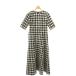 アナイ ANAYI 24AW ストレッチジャガードフレアワンピース ミモレ ロング 半袖 クルーネック 総柄 38 黒 ブラック 白 ホワイト