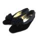 シャネル CHANEL パンプス フラットシューズ コサージュ ベルベット プリーツ 黒 ブラック 35 ■IBO91 レディース